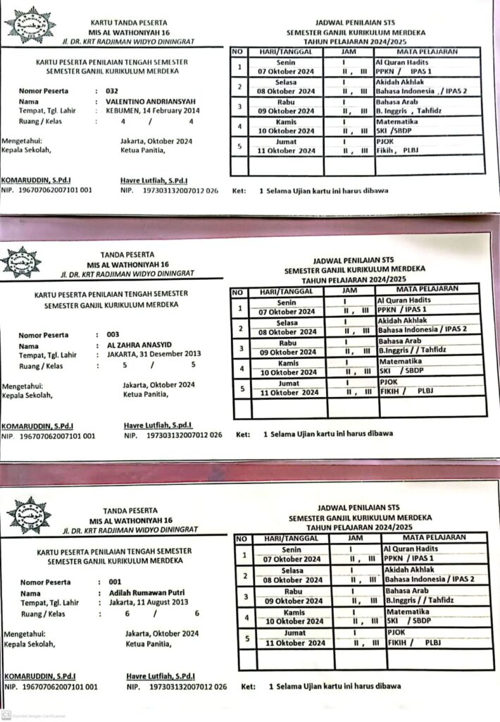 Peserta yang mengikuti program kegiatan Sumatif Tengah Semester (STS) seluruh siswa siswi MI Al Wathoniyah 16 dari kls 1-6
